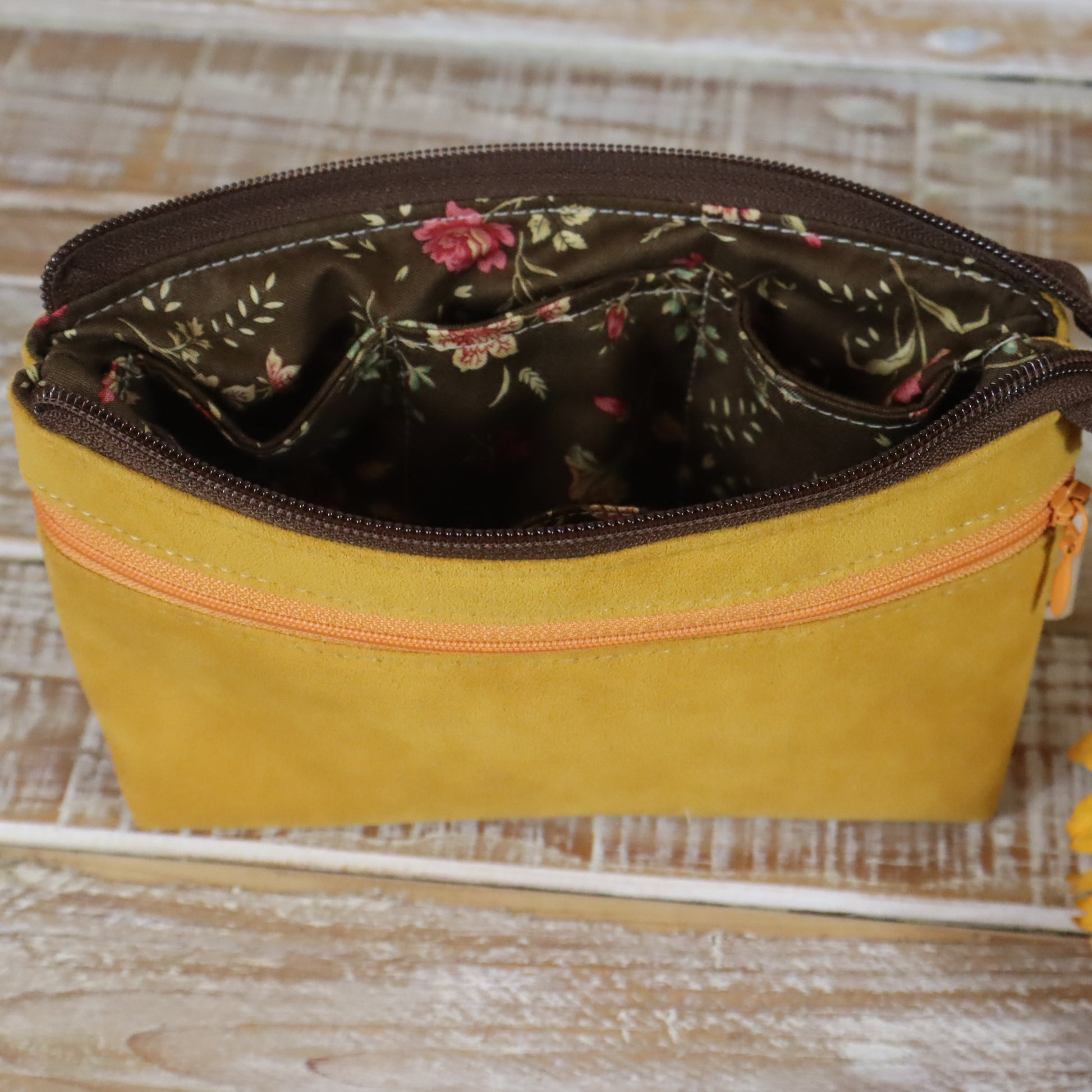 Colori: esterno giallo ocra , interno fantasia marrone con fiori