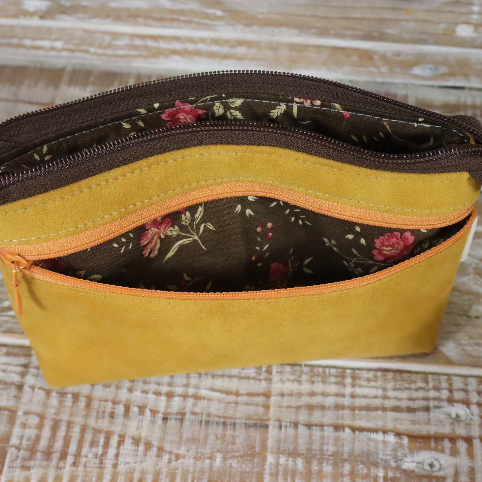 Sono un portafoglio pochette elegante e funzionale, realizzato esternamente in alcantara e cotone americano super colorato all'interno.