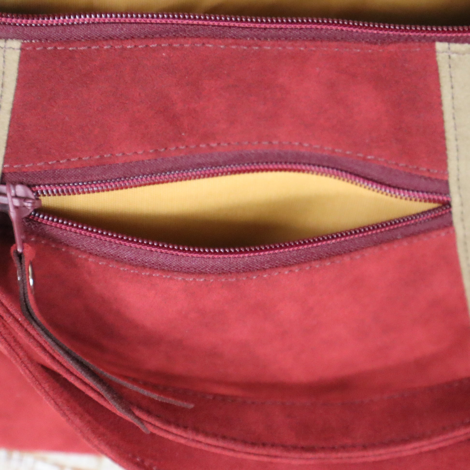 Caratteristiche: Chiusa con cerniera lampo, ho una tasca esterna chiusa con lampo e due tasche interne .