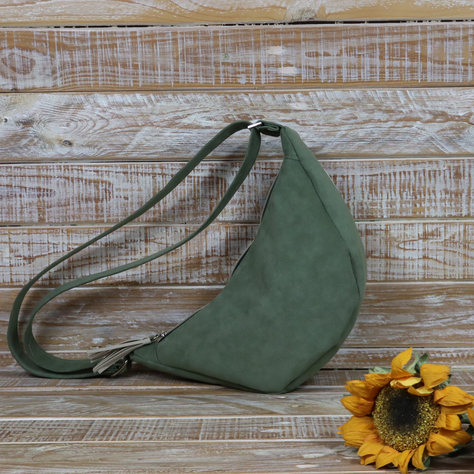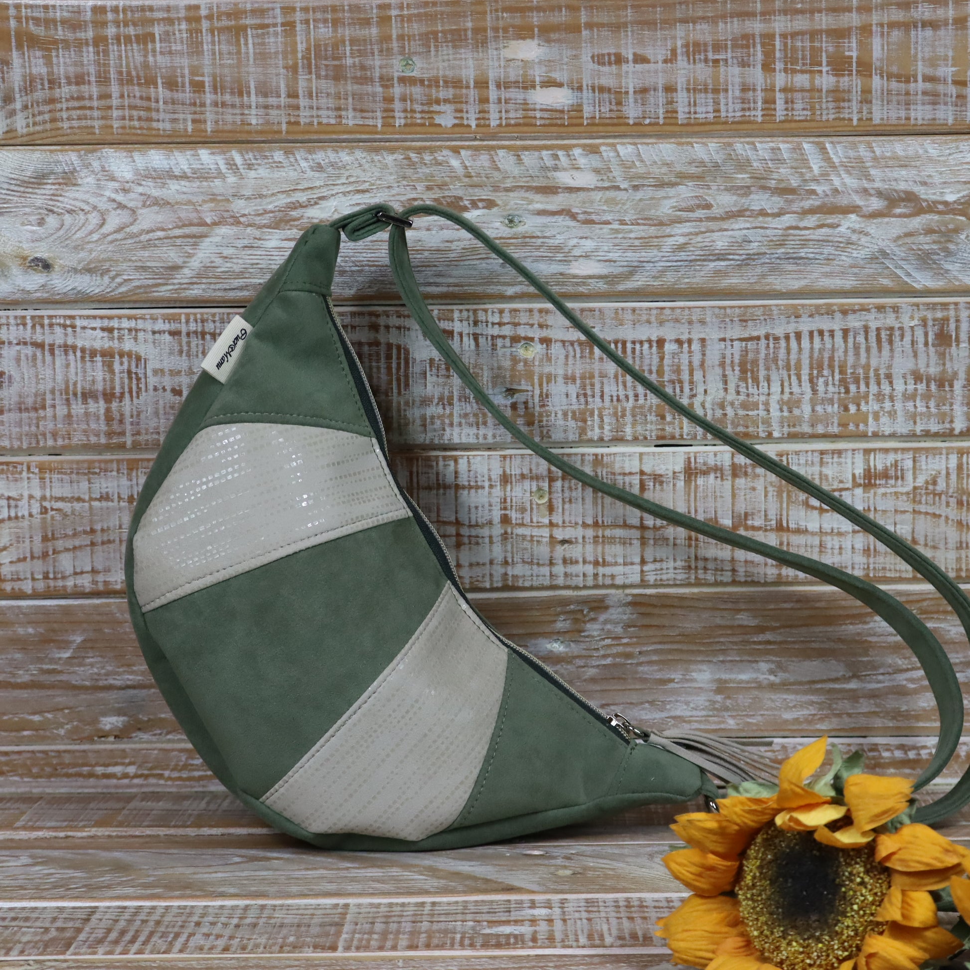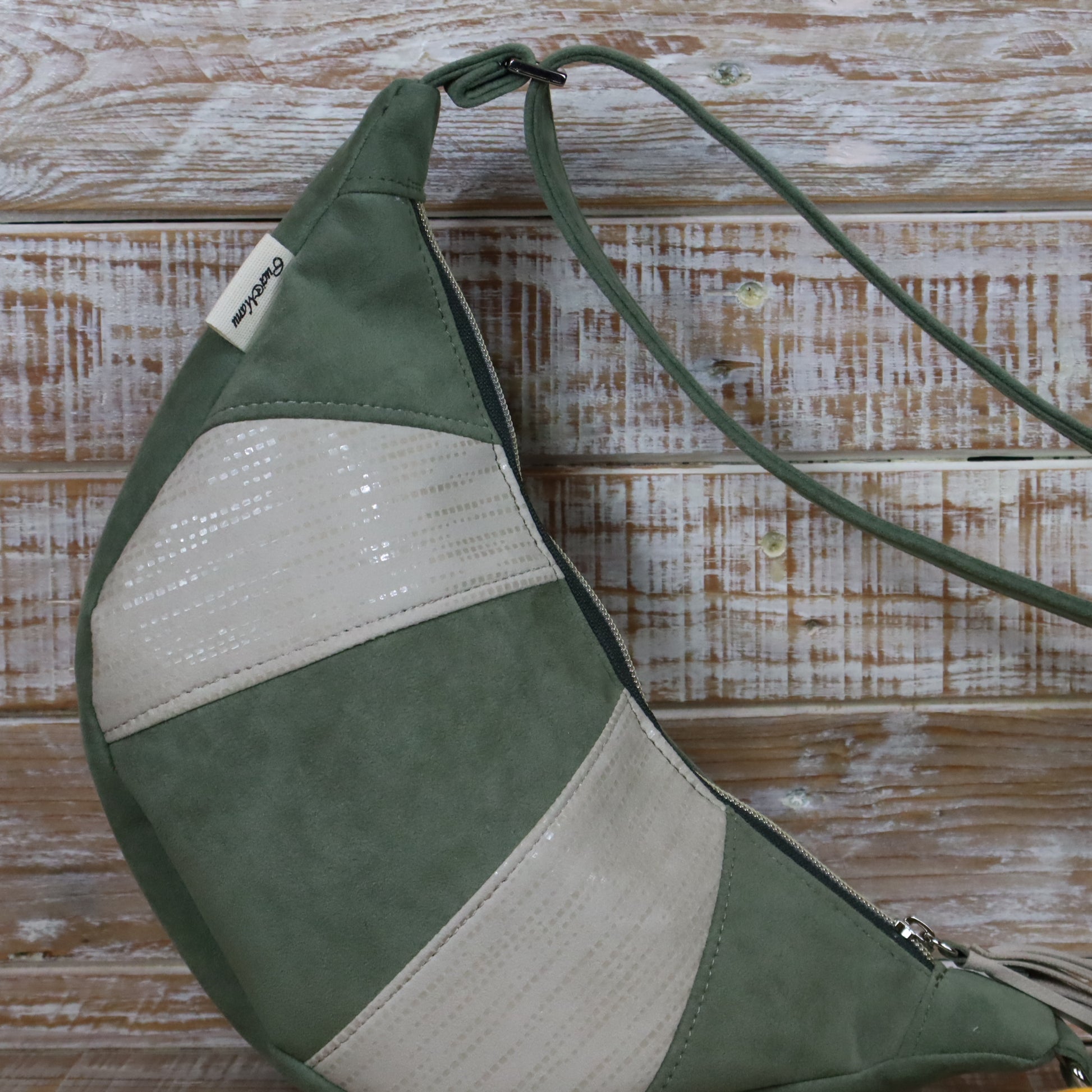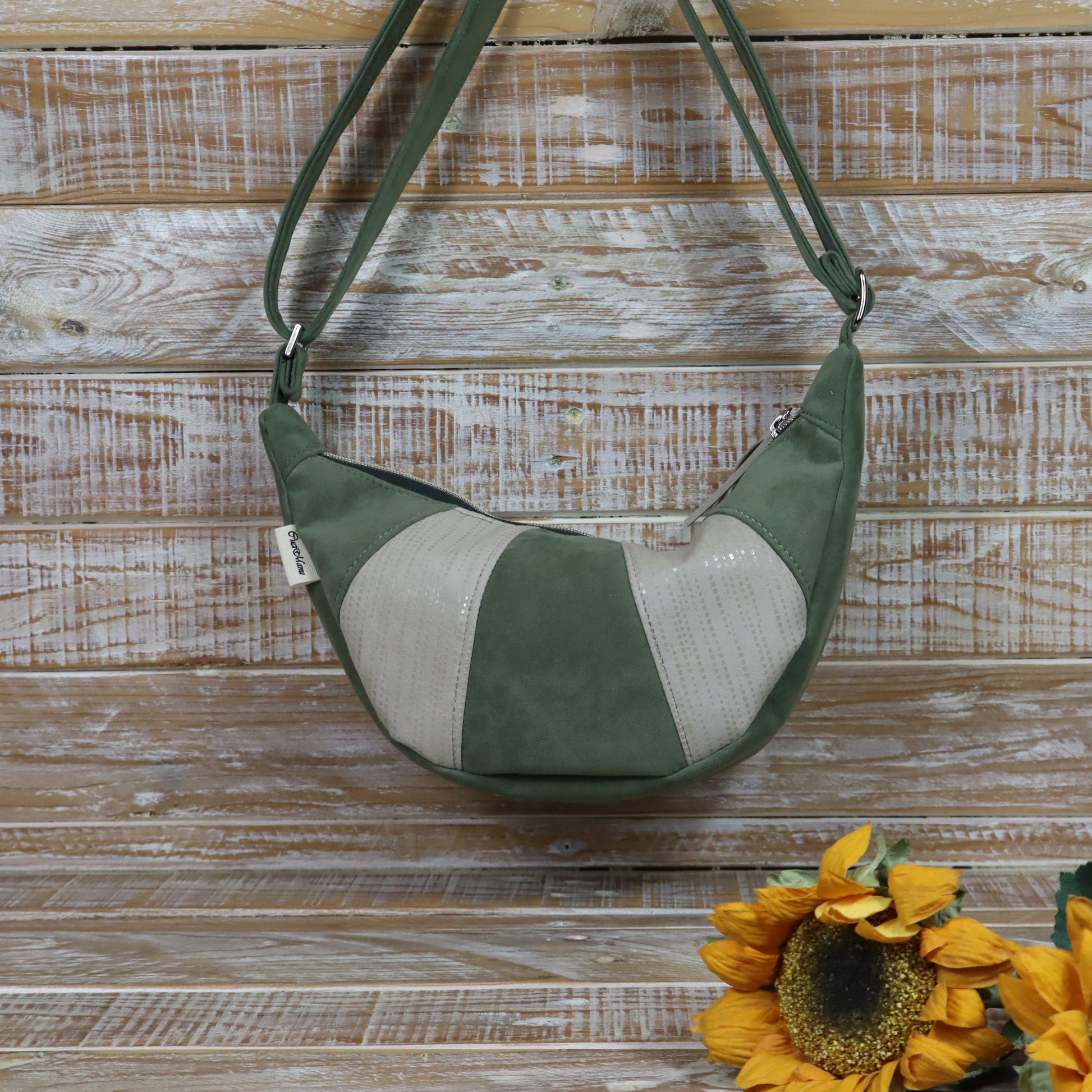 Ciao, mi chiamo Luna! Sono una tracolla con la forma a mezzaluna. Sono compatta, ma sorprendentemente capiente, sono pensata per essere indossata lateralmente, appoggiata al fianco o leggermente sul davanti, seguendo la linea del corpo.