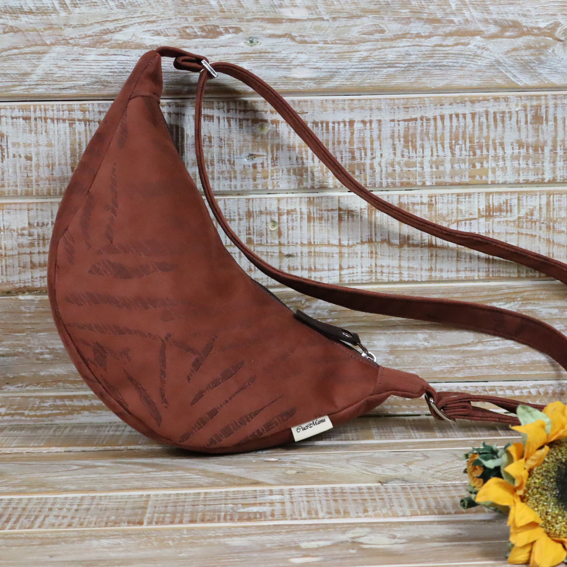 Ciao, mi chiamo Luna! Sono una tracolla con la forma a mezzaluna. Sono compatta, ma sorprendentemente capiente, sono pensata per essere indossata lateralmente, appoggiata al fianco o leggermente sul davanti, seguendo la linea del corpo.