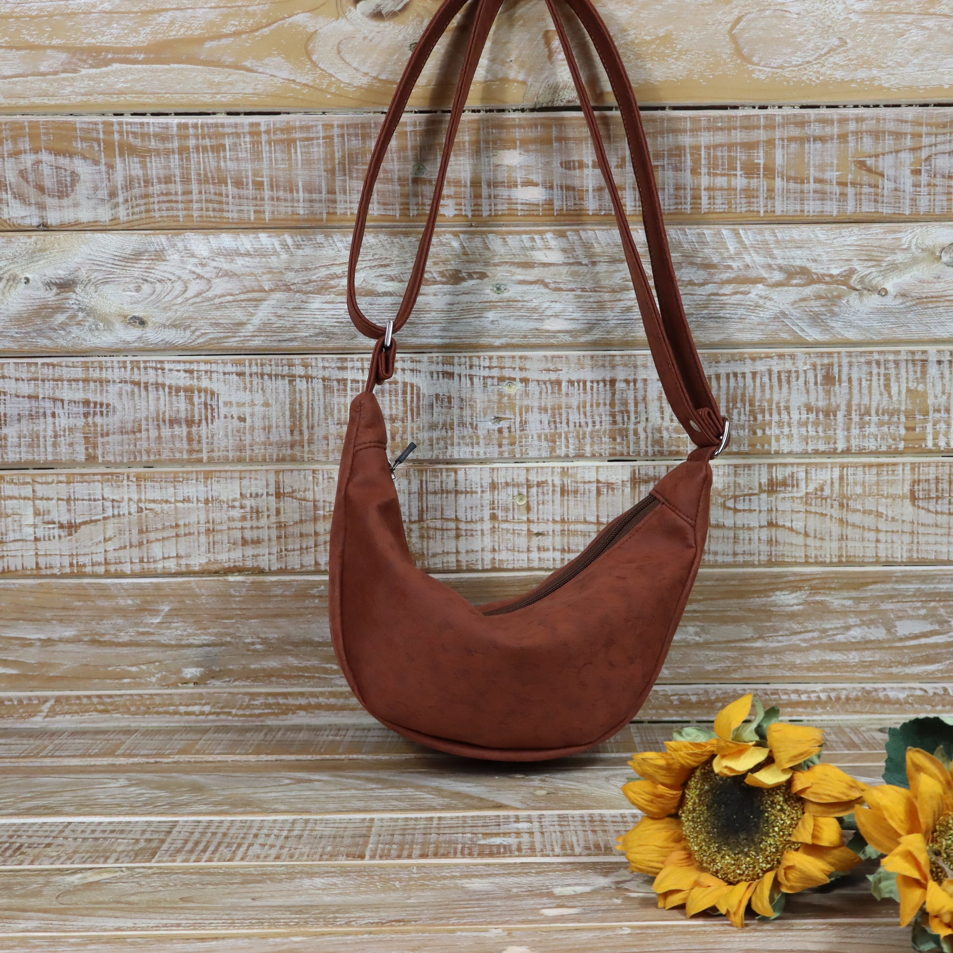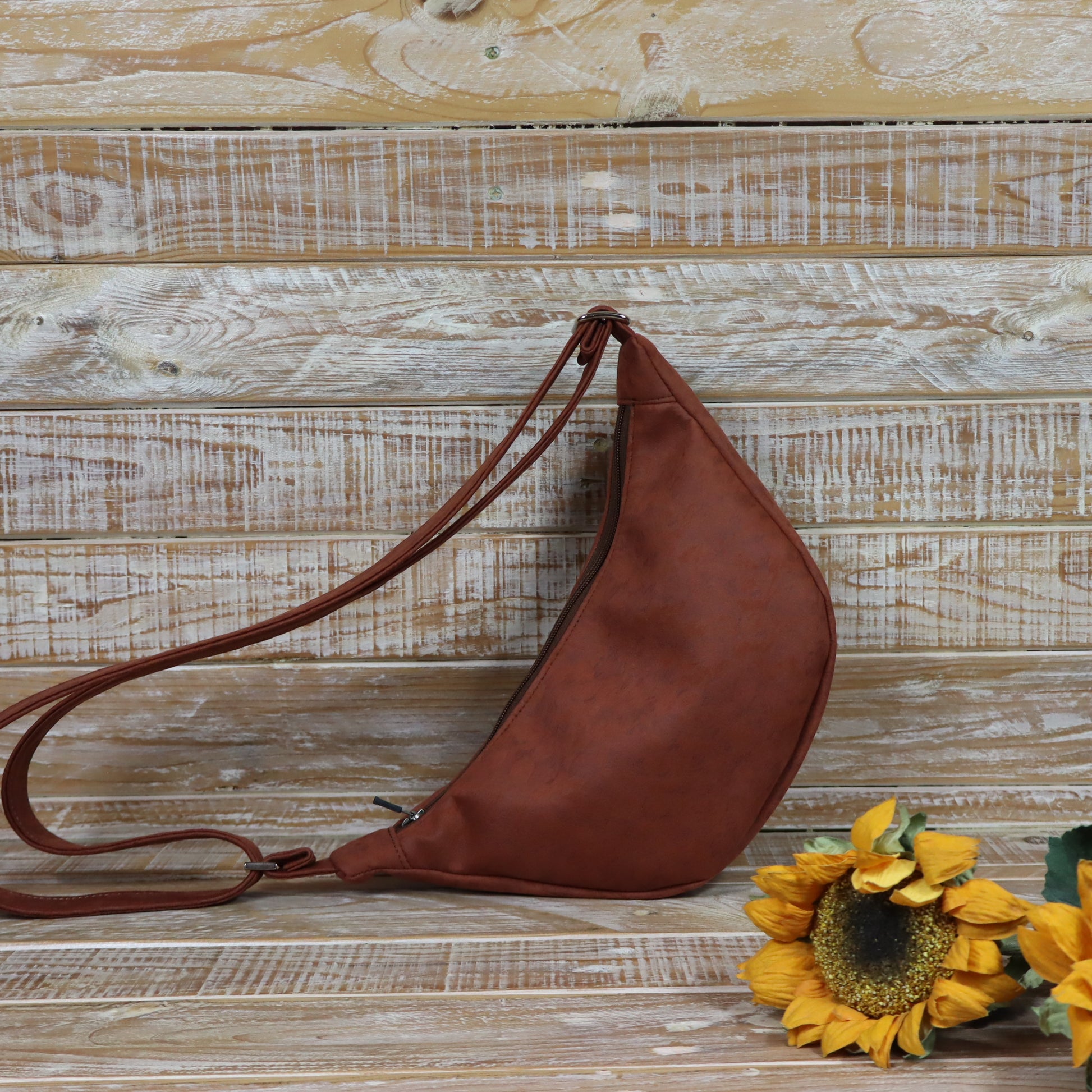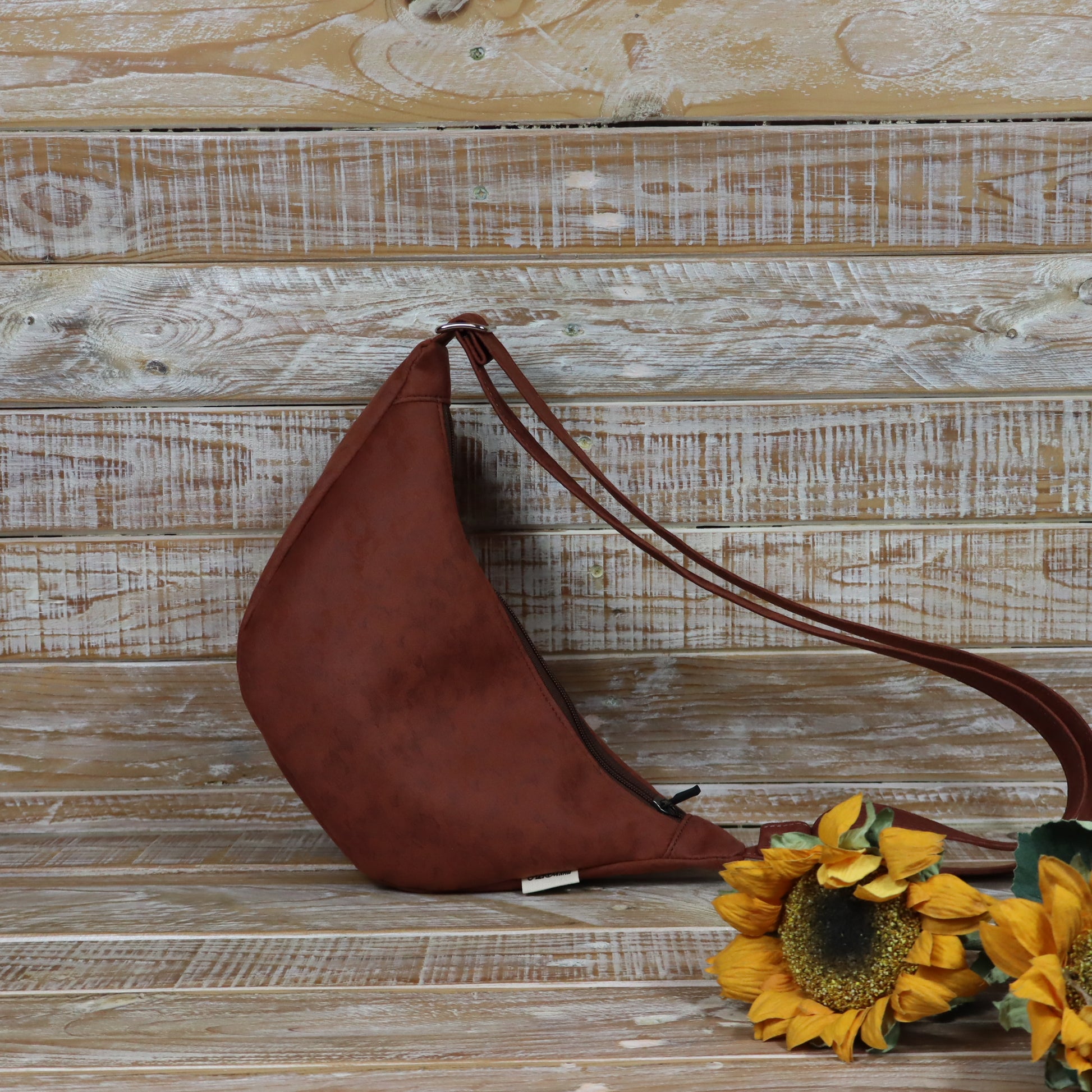 Ciao, mi chiamo Luna! Sono una tracolla con la forma a mezzaluna. Sono compatta, ma sorprendentemente capiente, sono pensata per essere indossata lateralmente, appoggiata al fianco o leggermente sul davanti, seguendo la linea del corpo.